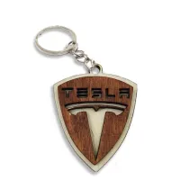 Breloc din lemn 3D, woodmag, 56x44mm, cu logo-ul TESLA