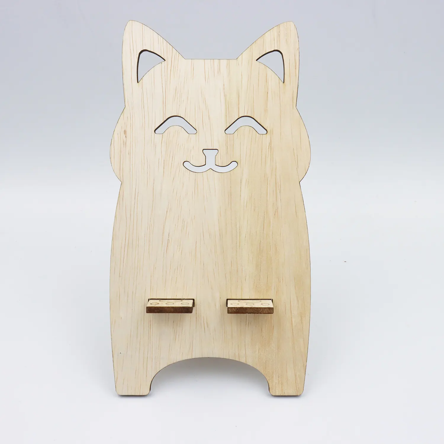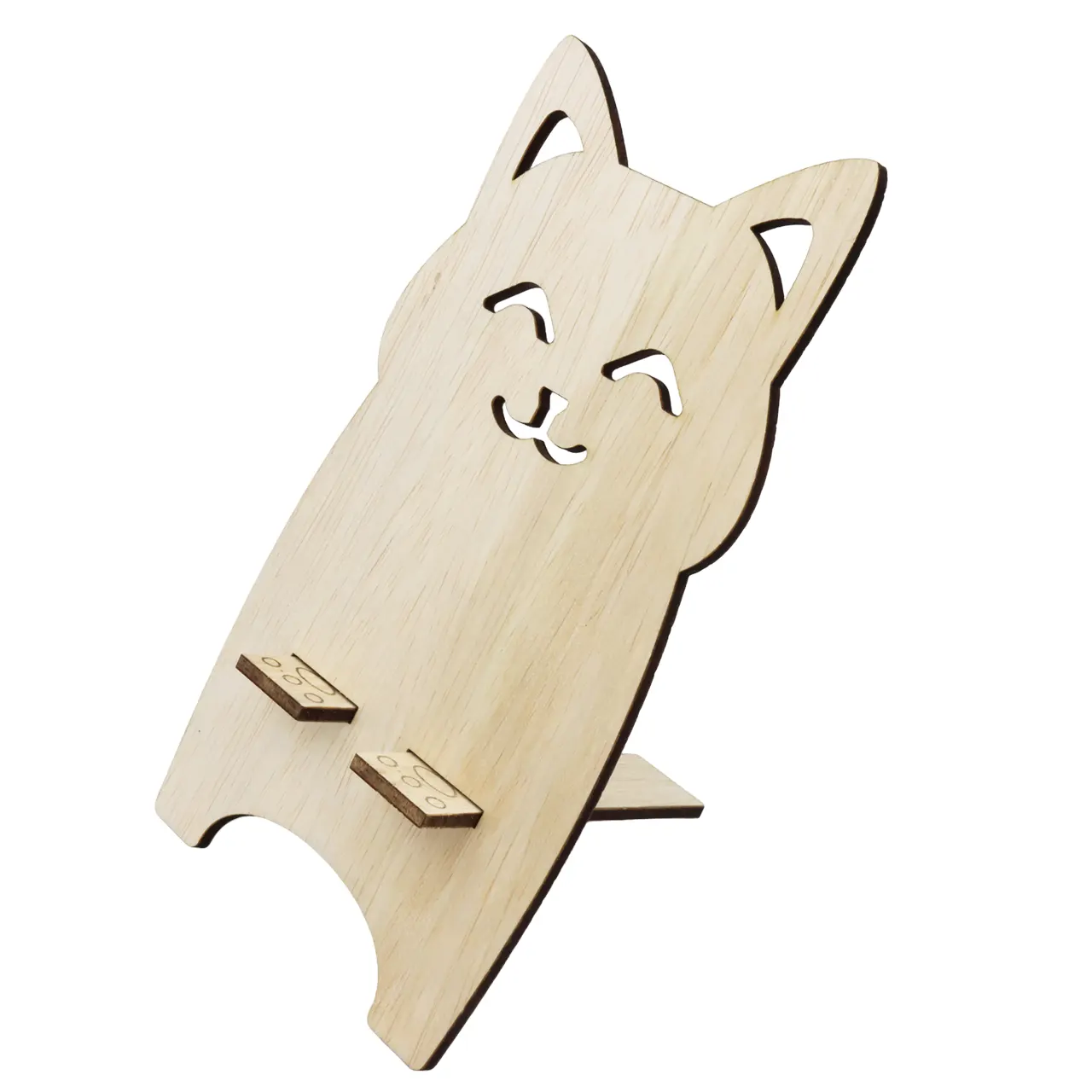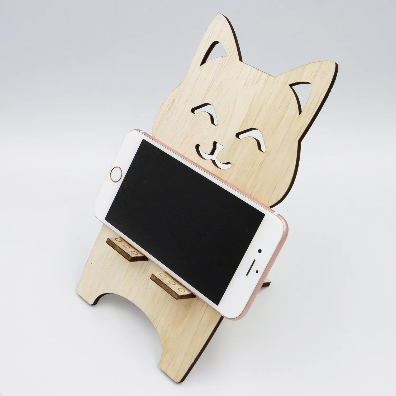 Suport universal de birou pentru telefon WoodMag, Model Pisicuta PD14, dimensiune 20x12 cm