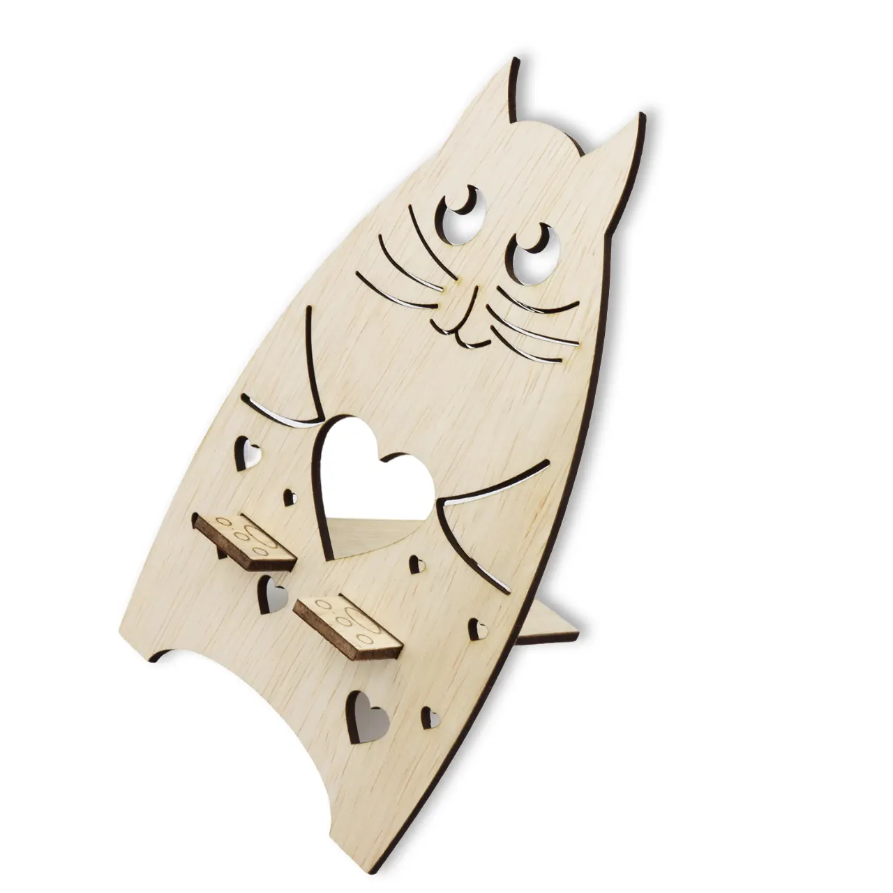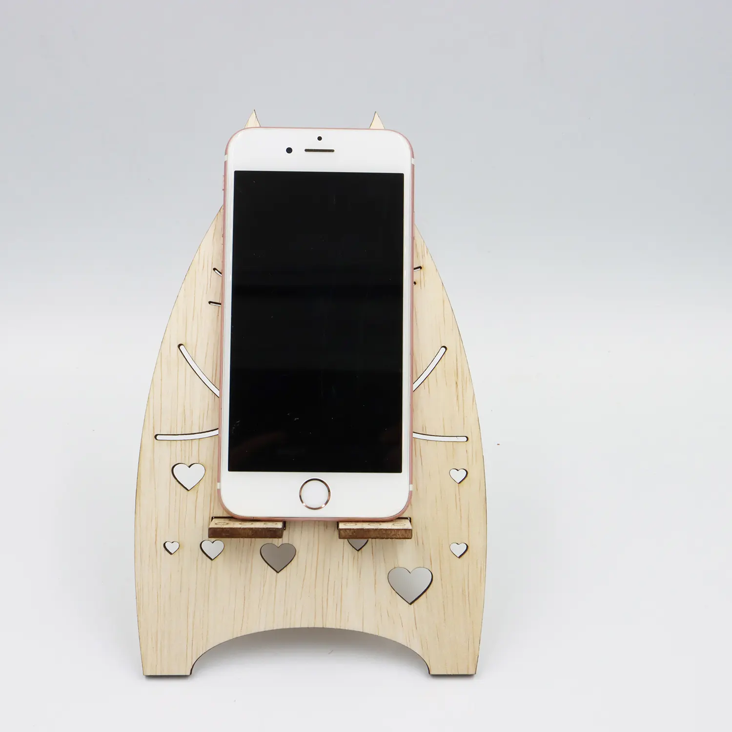 Suport universal de birou pentru telefon WoodMag, Model Pisicuta PD12, dimensiune 20x11 cm