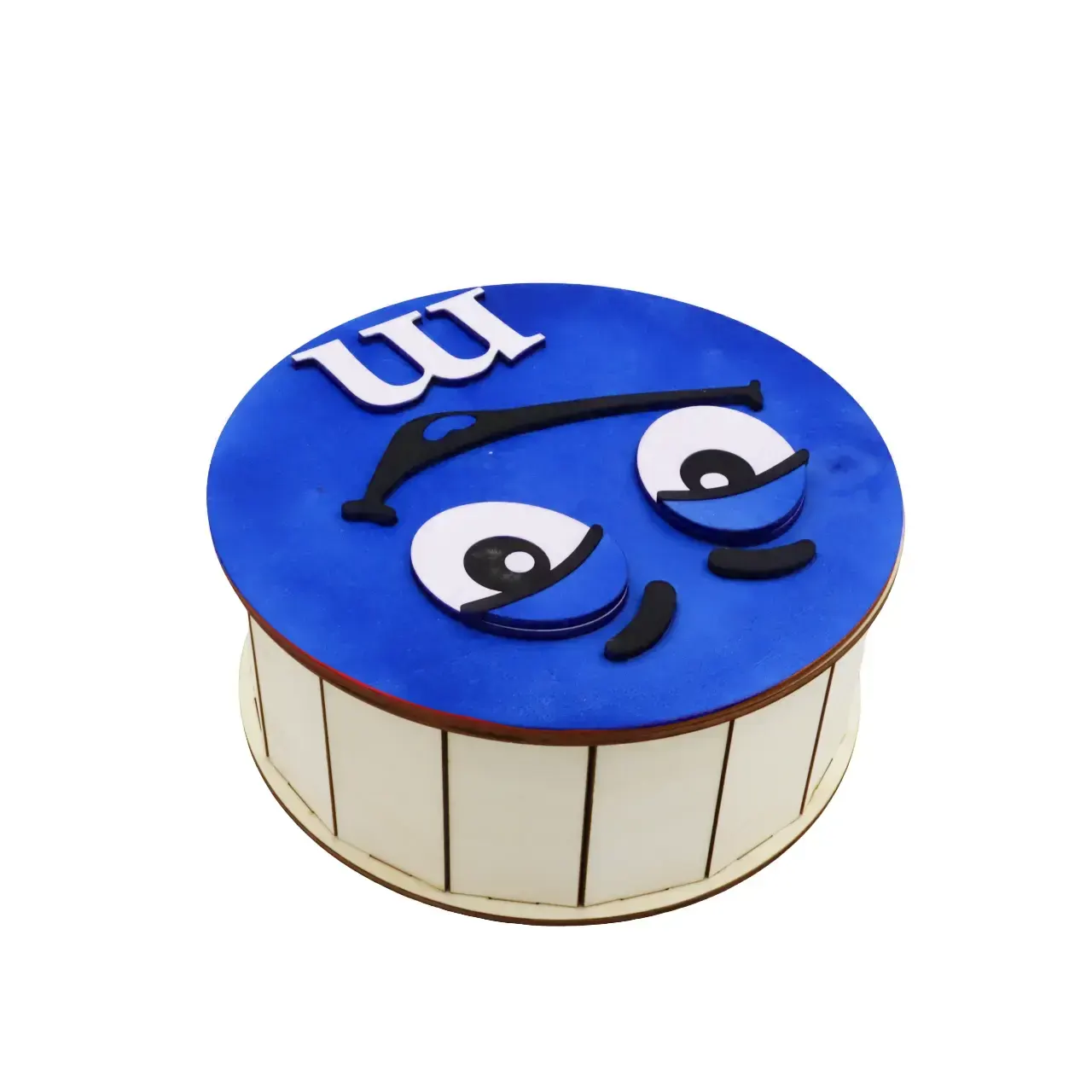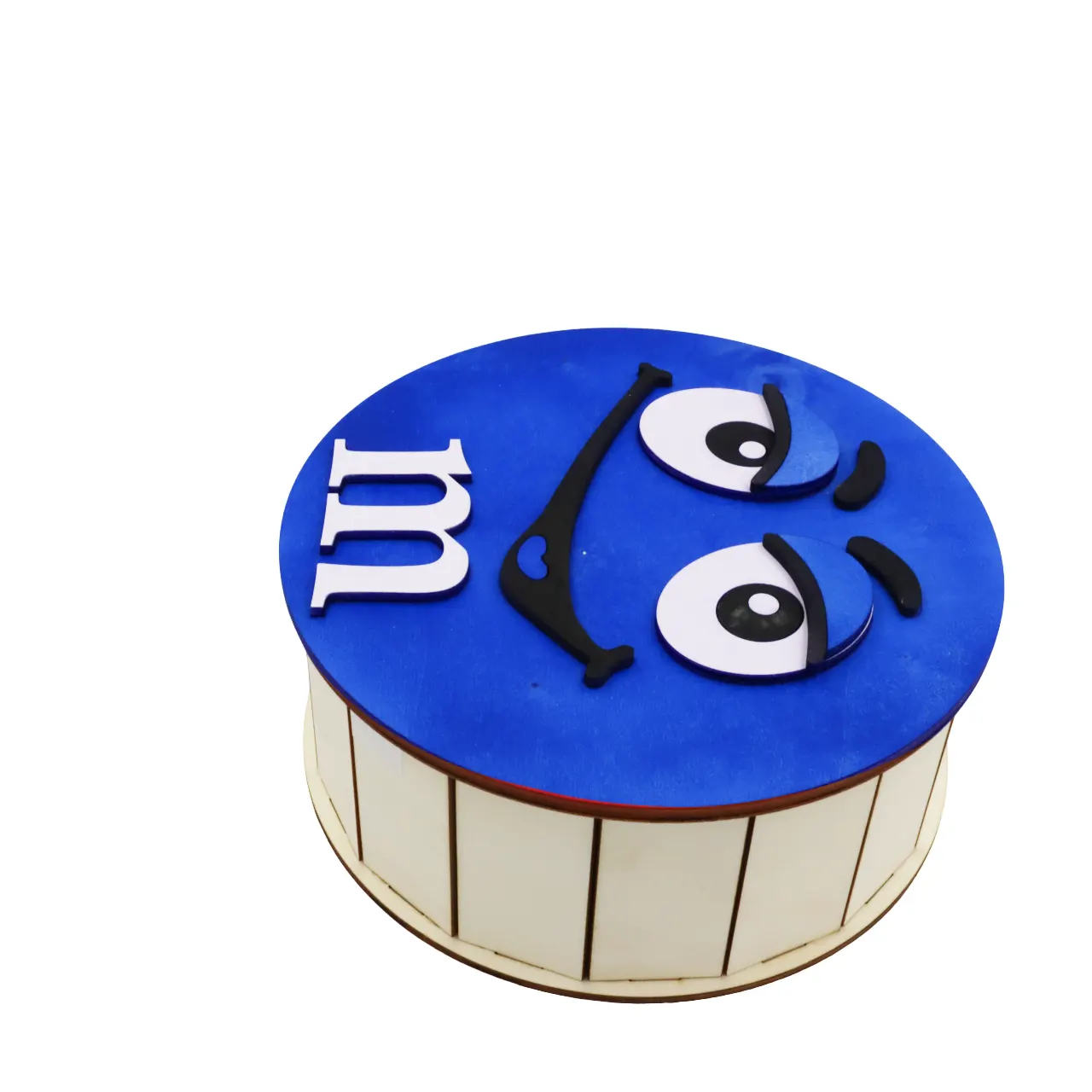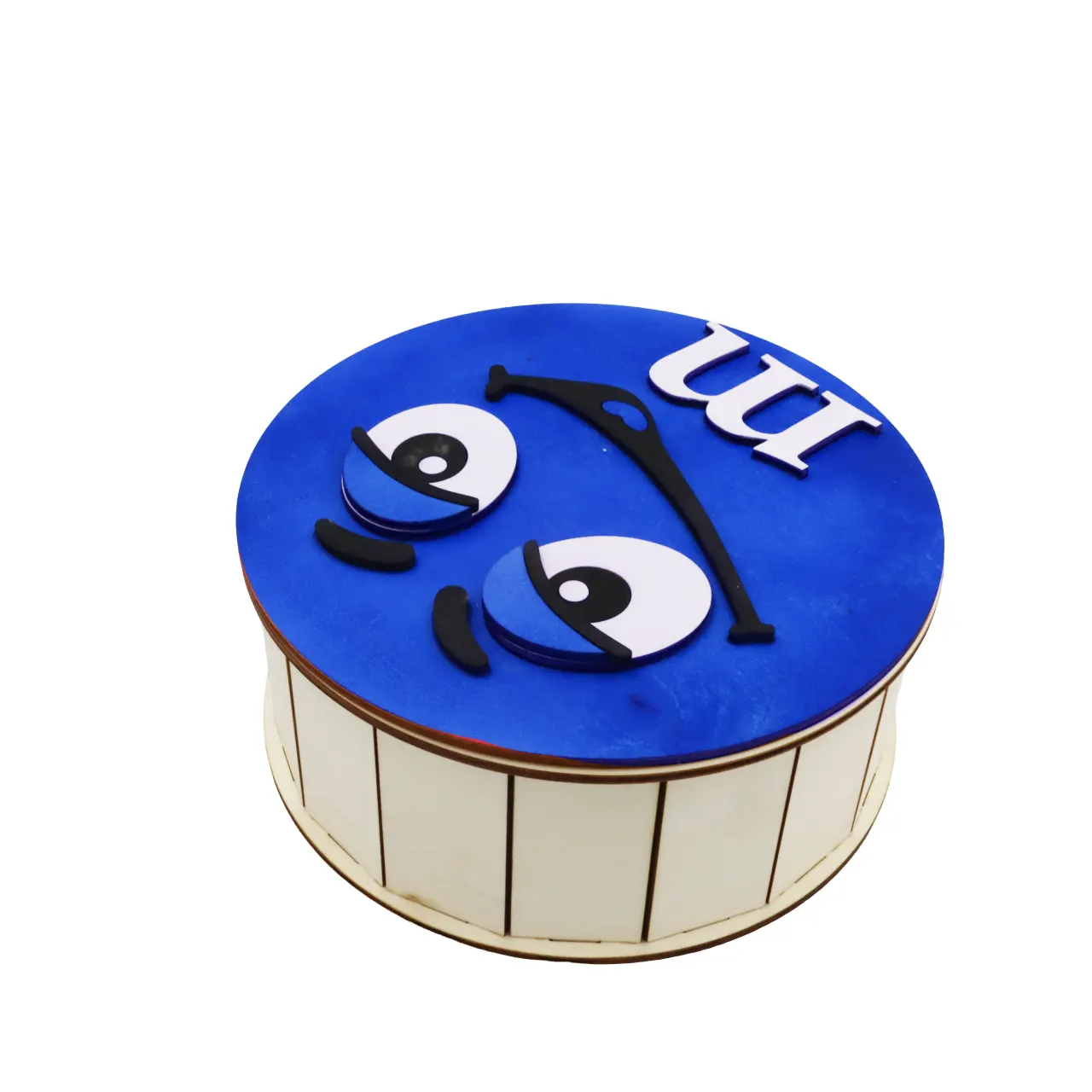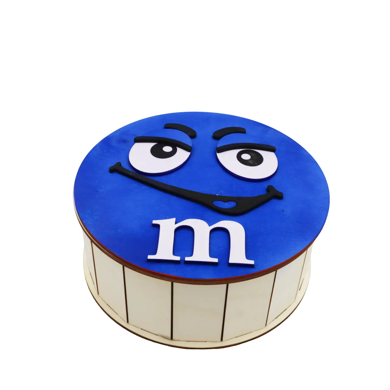 Cutie de cadouri cu capac,rotund tematica mister M m&m, perfecta pentru a oferi cadou unor copii de Craciun, Paste, Zile de Nastere etc, si pentru a pastra dulciuri sau alte obiecte.