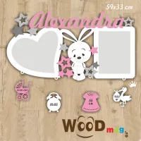 Rama foto personalizata WoodMag botez, 59x33 cm, model iepuras
