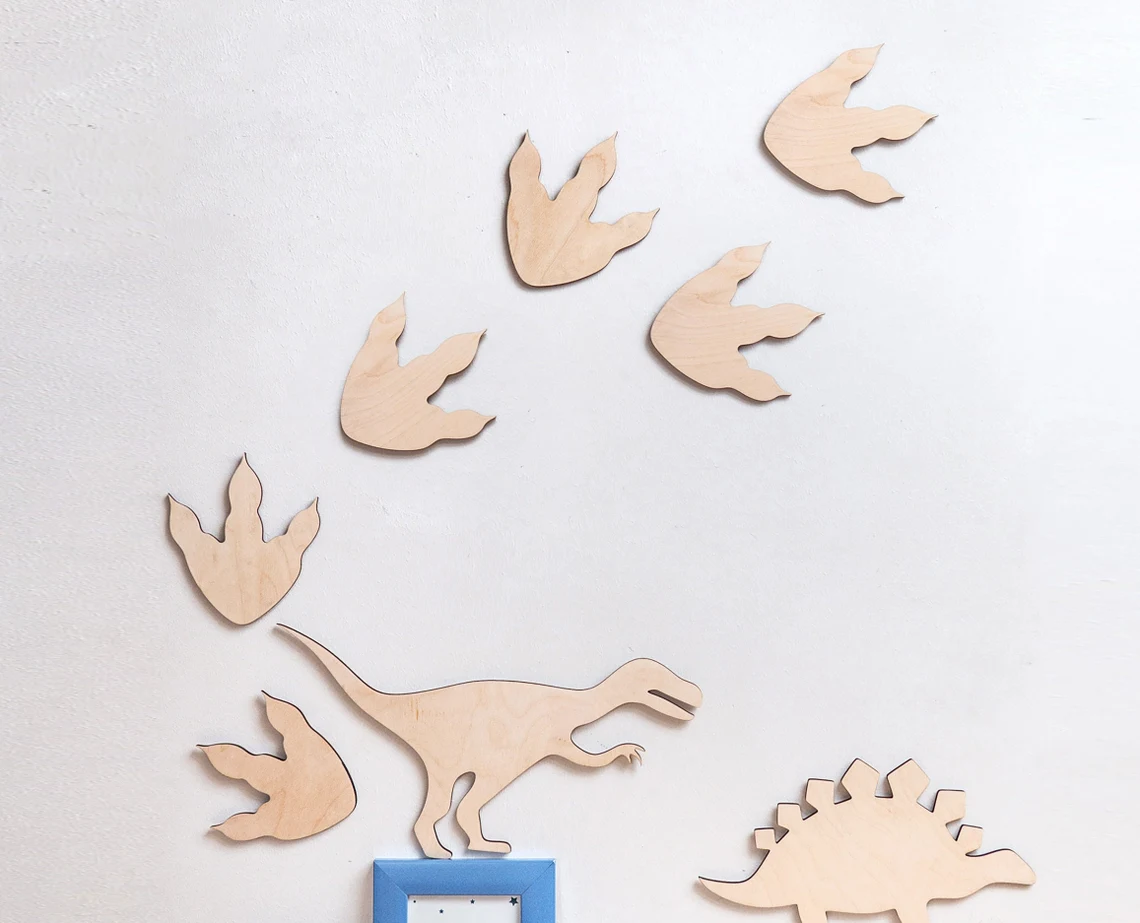 Decoratiune pe perete cu dinozauri si urme de dinozauri