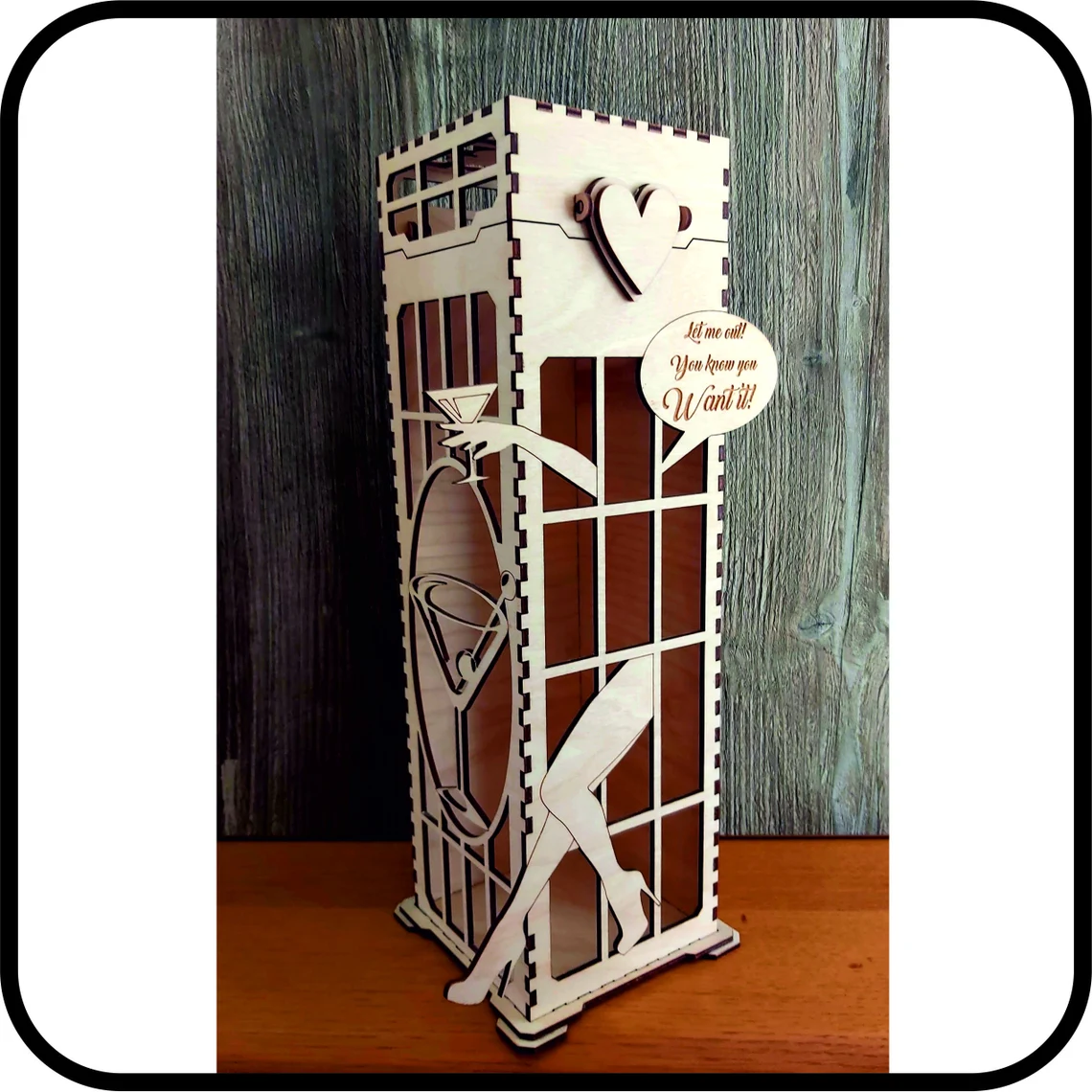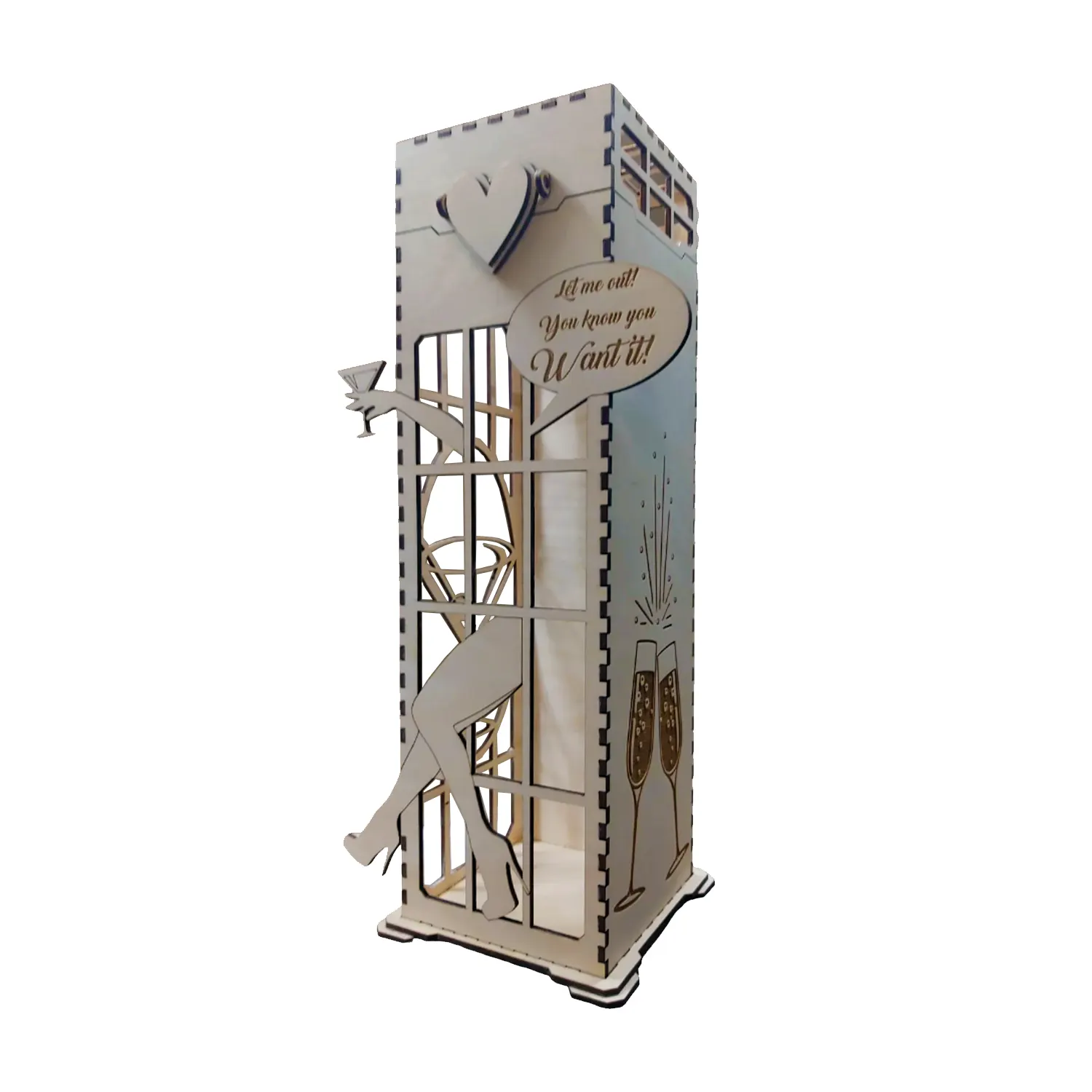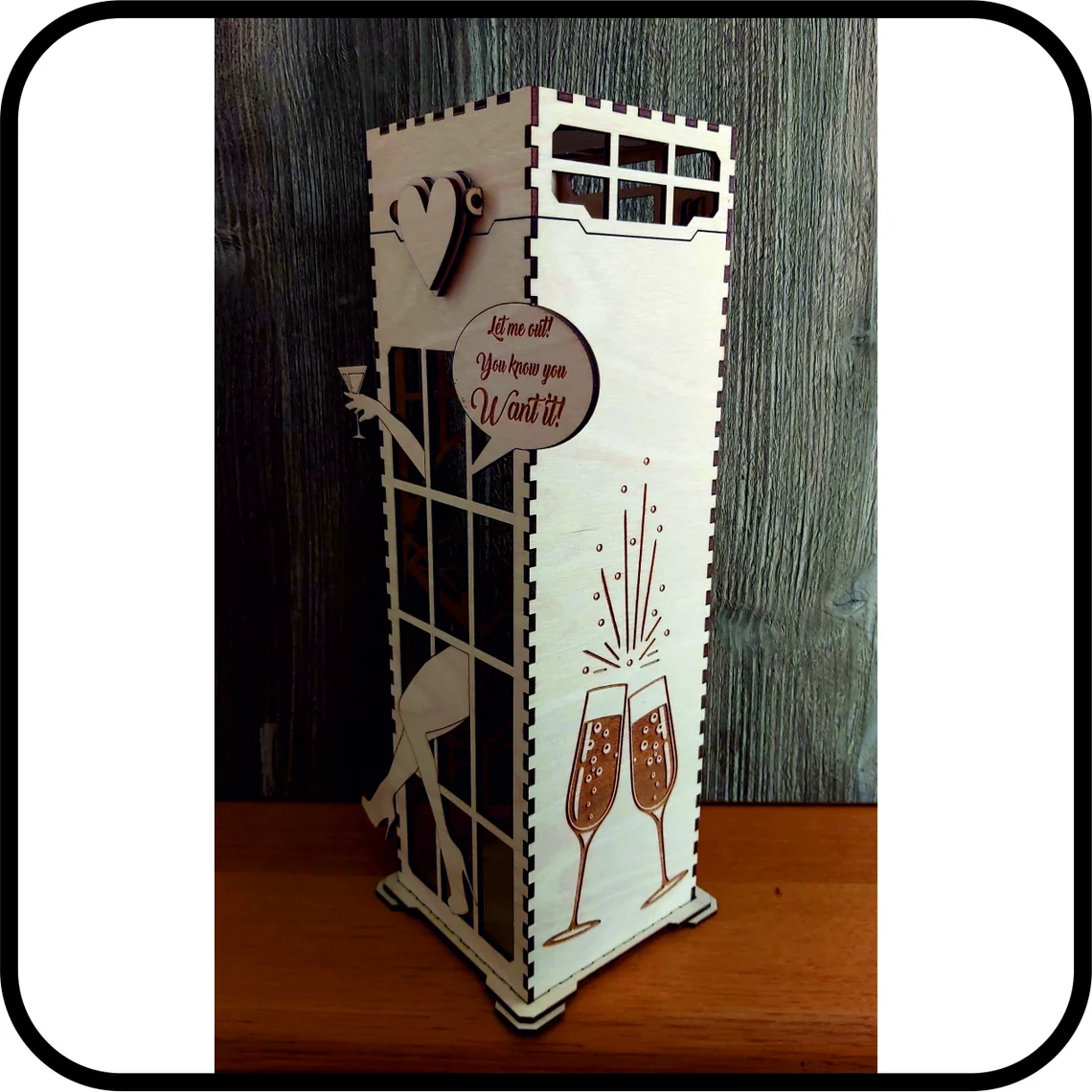 Cutie cadou pentru vin din lemn cu capac tematica - Get me out of Jail