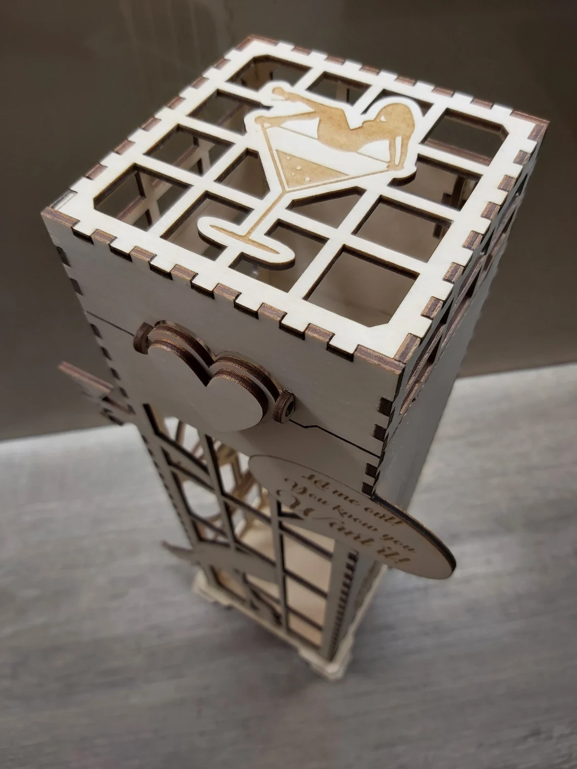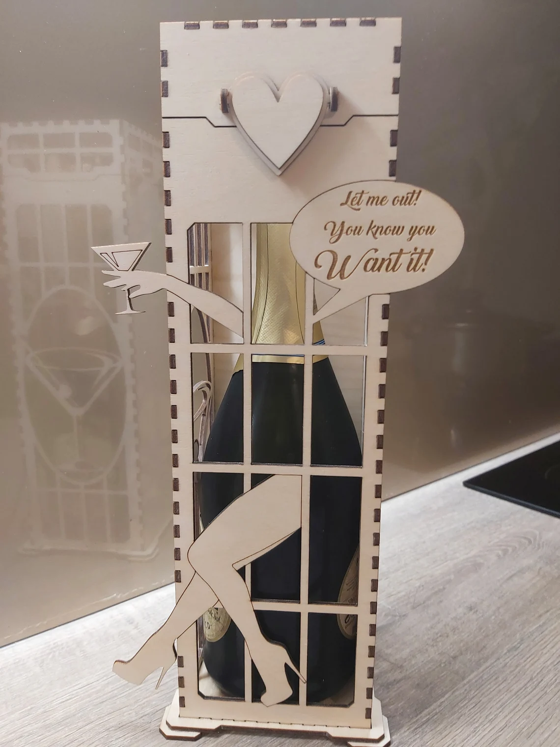 Cutie sticla de vin pentru diverse evenimente, capac si mesaj, 35x10x10 cm, woodmag CV01E