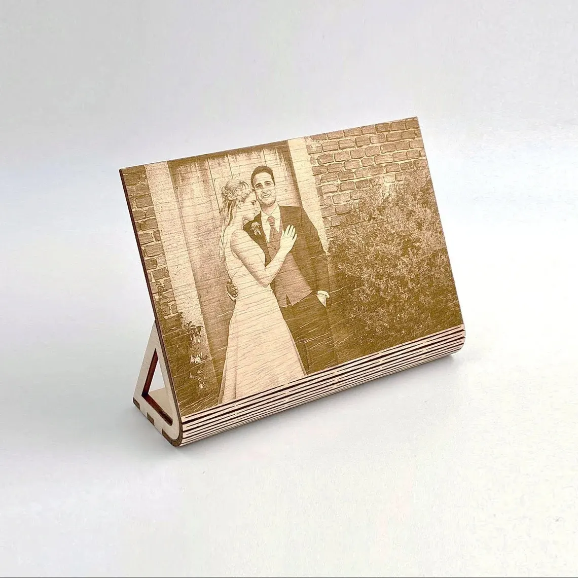 Rama foto si cu poza gravata direct pe lemn, dimensiune 10cm x 15 cm, suportul este incorporat in rama,Material: Lemn 4mm