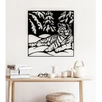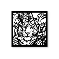 Tablou decorativ din lemn, TB65 Tigru in Padure, dimensiune standard 20x20 cm