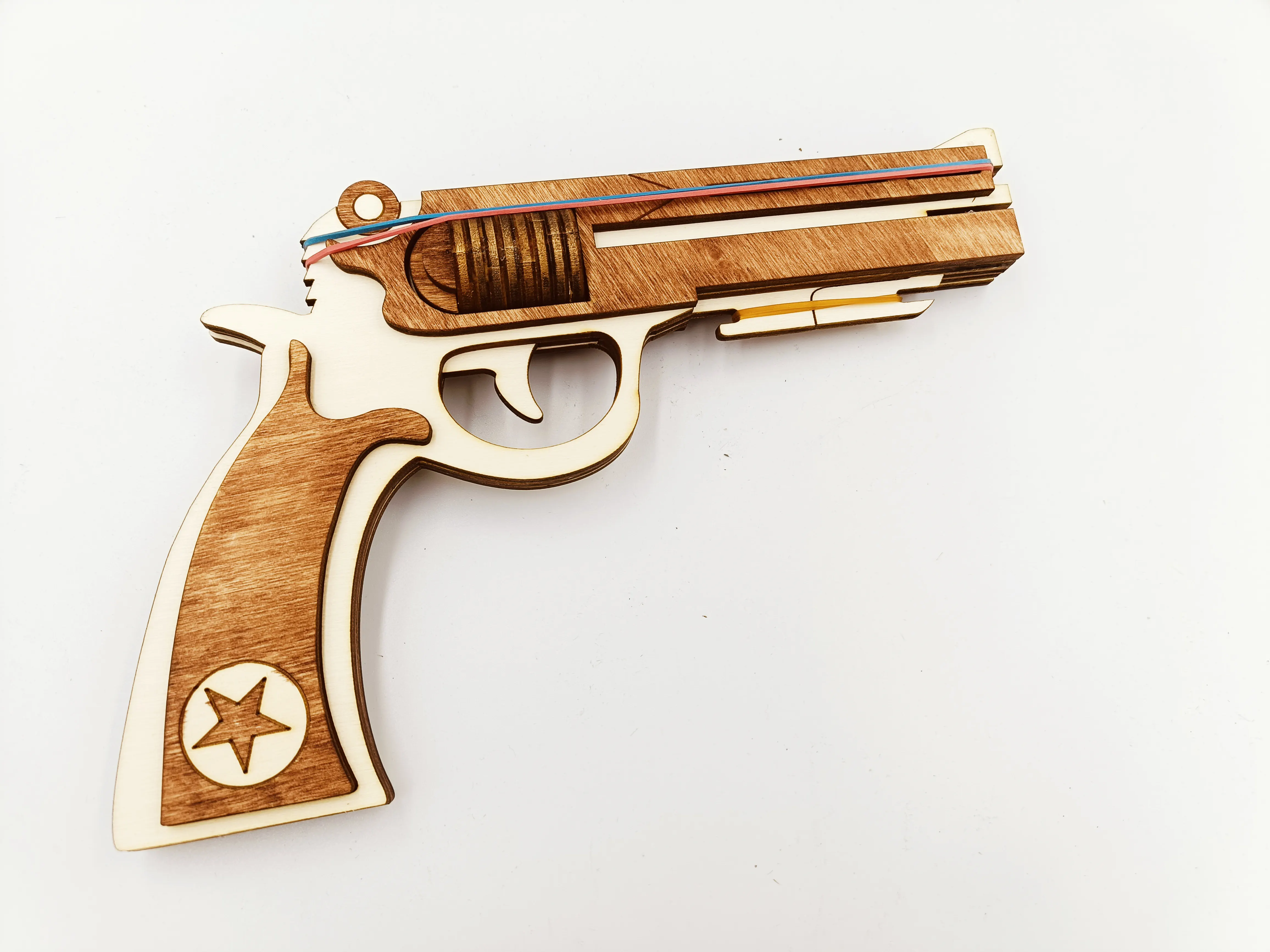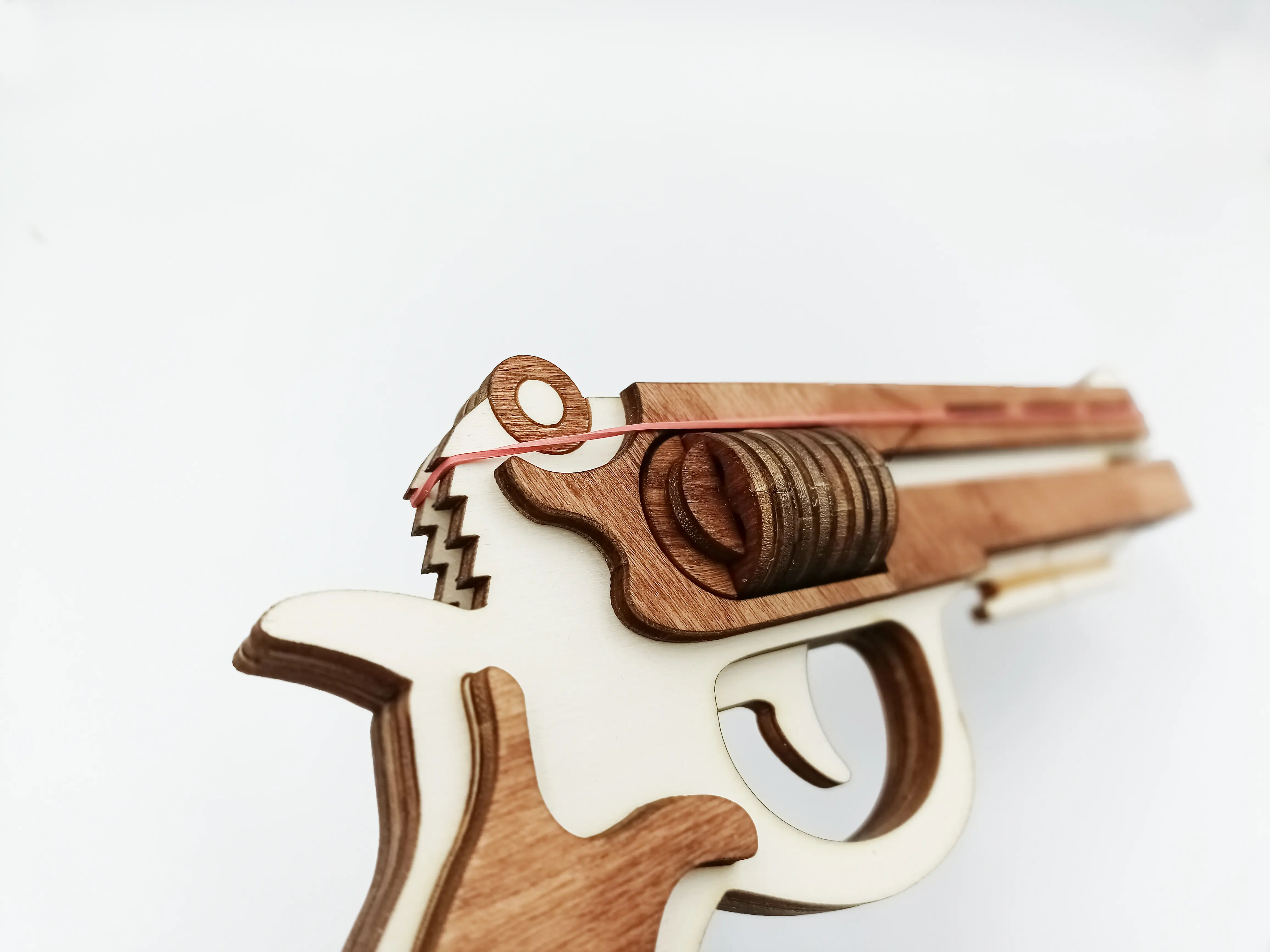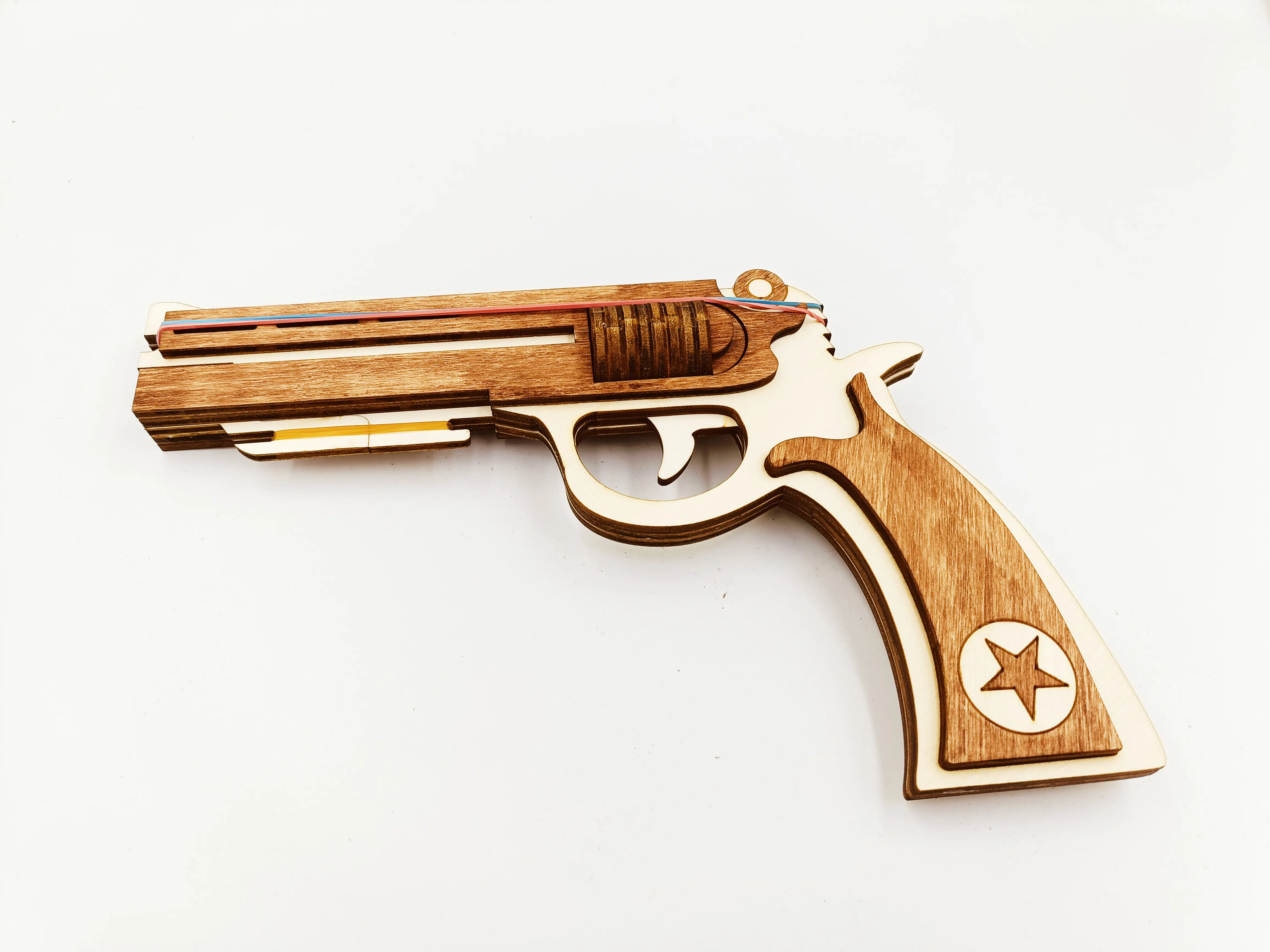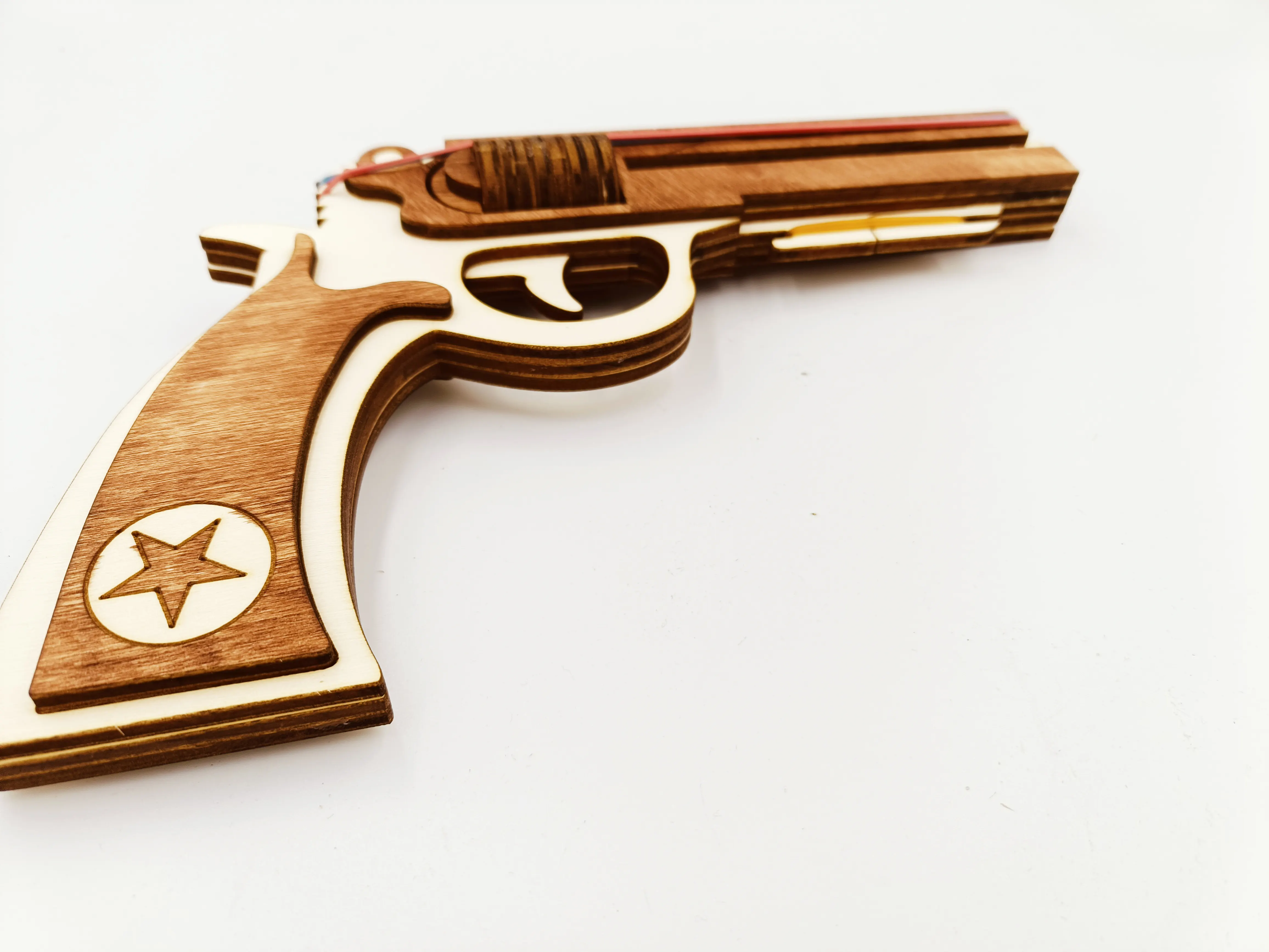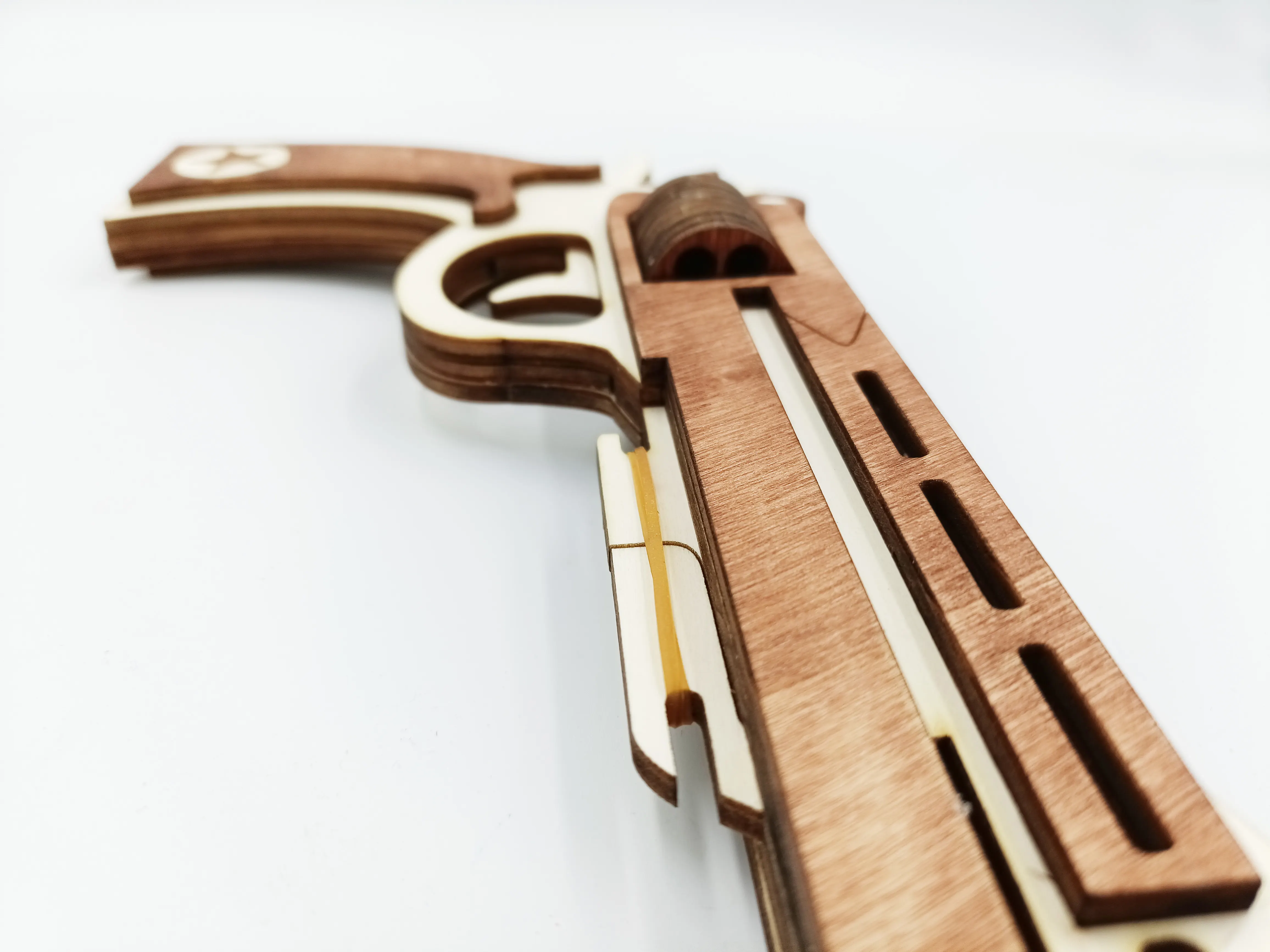 Pistol de lemn cu elastice WoodMag M2, tip revolver