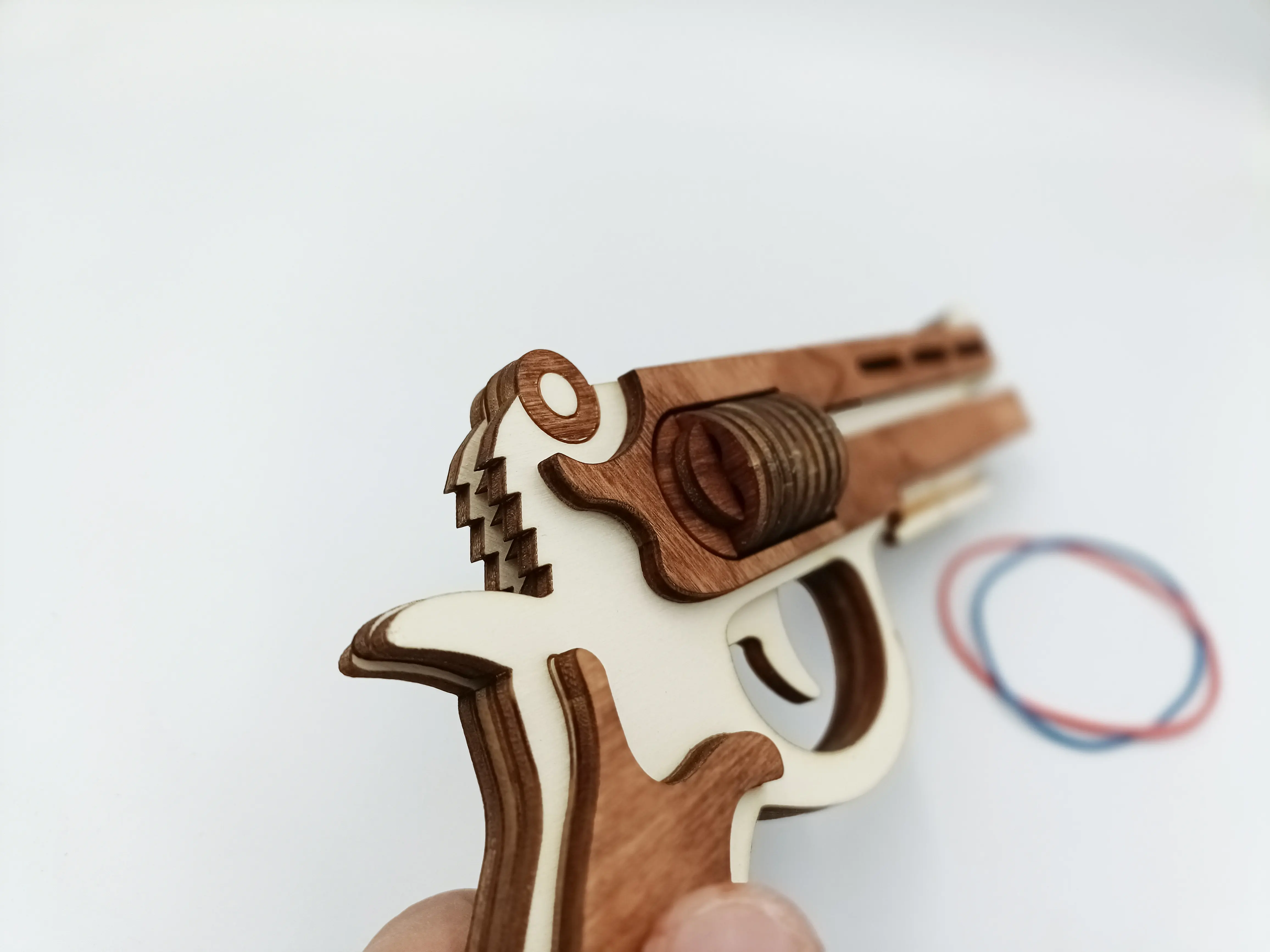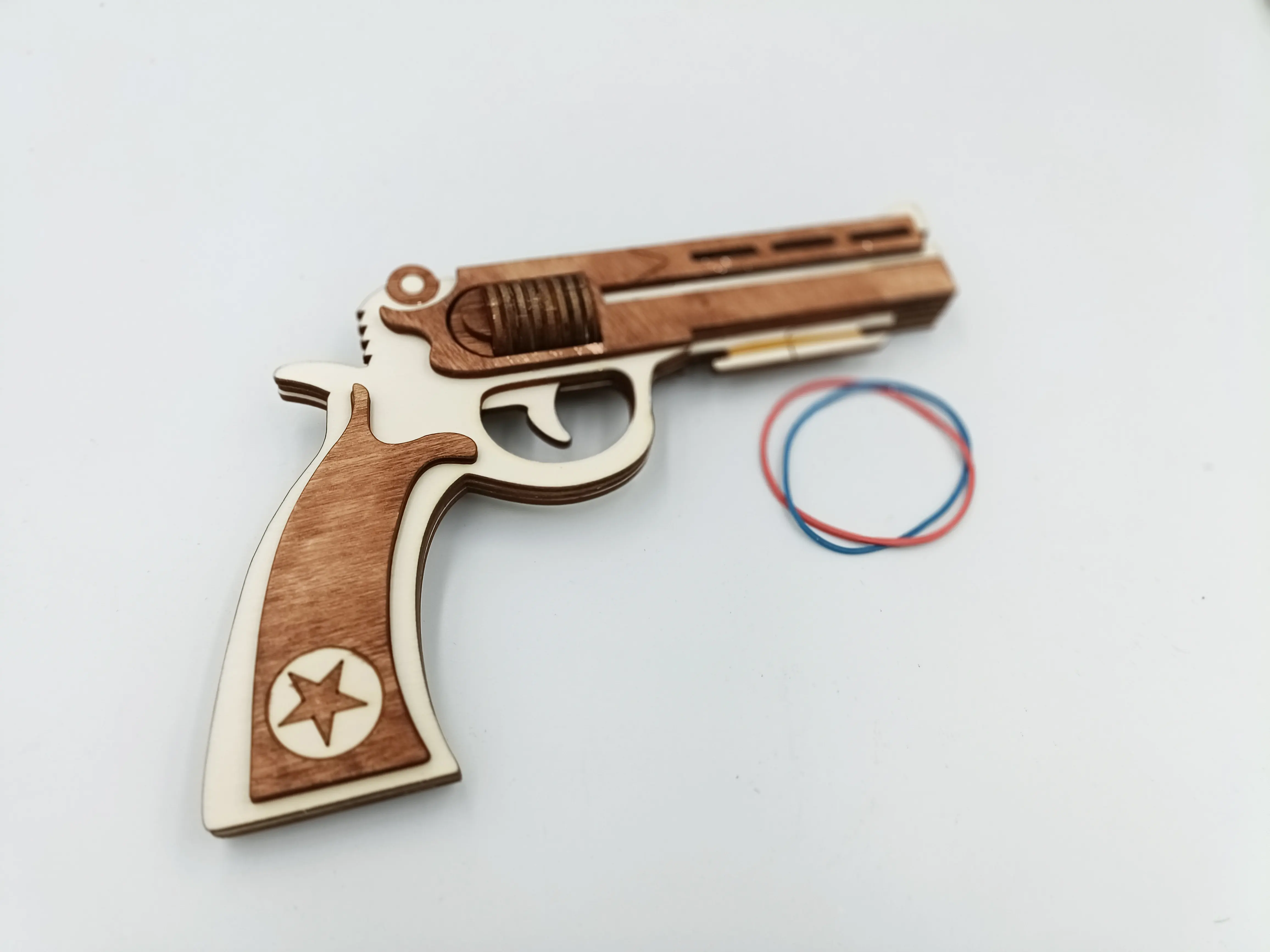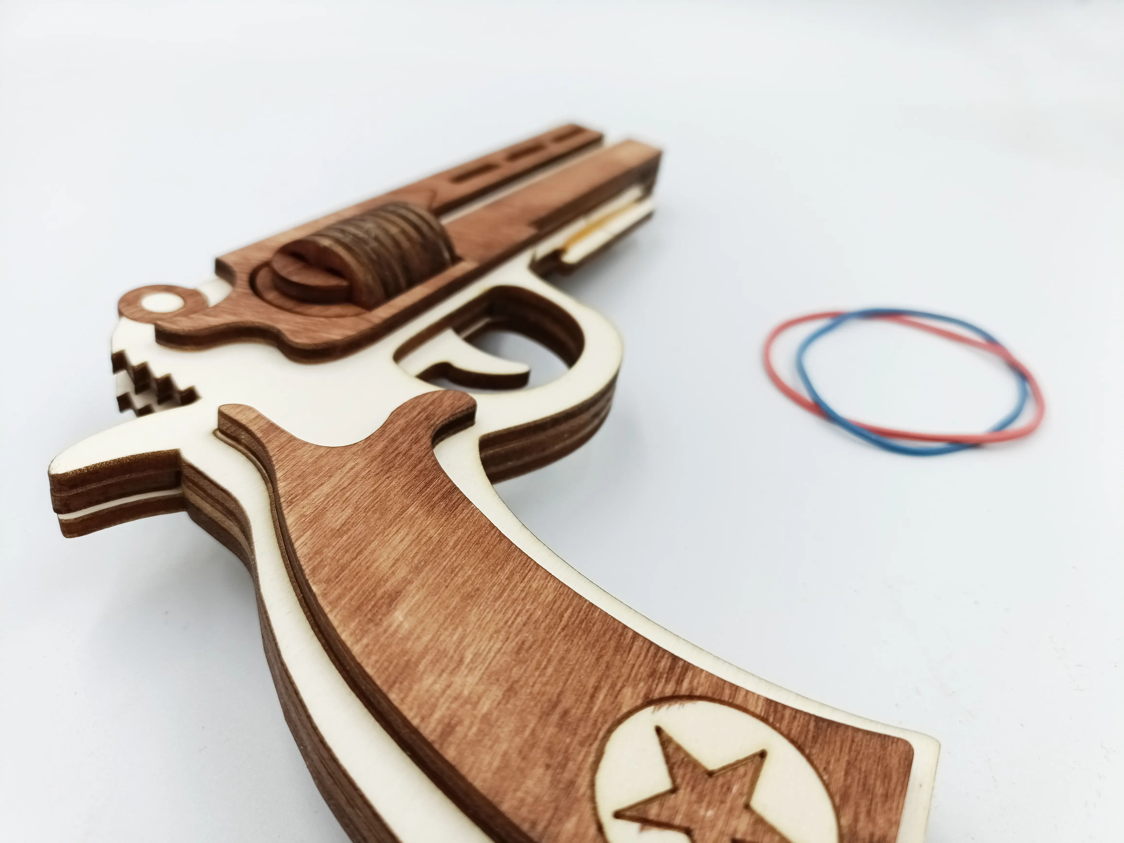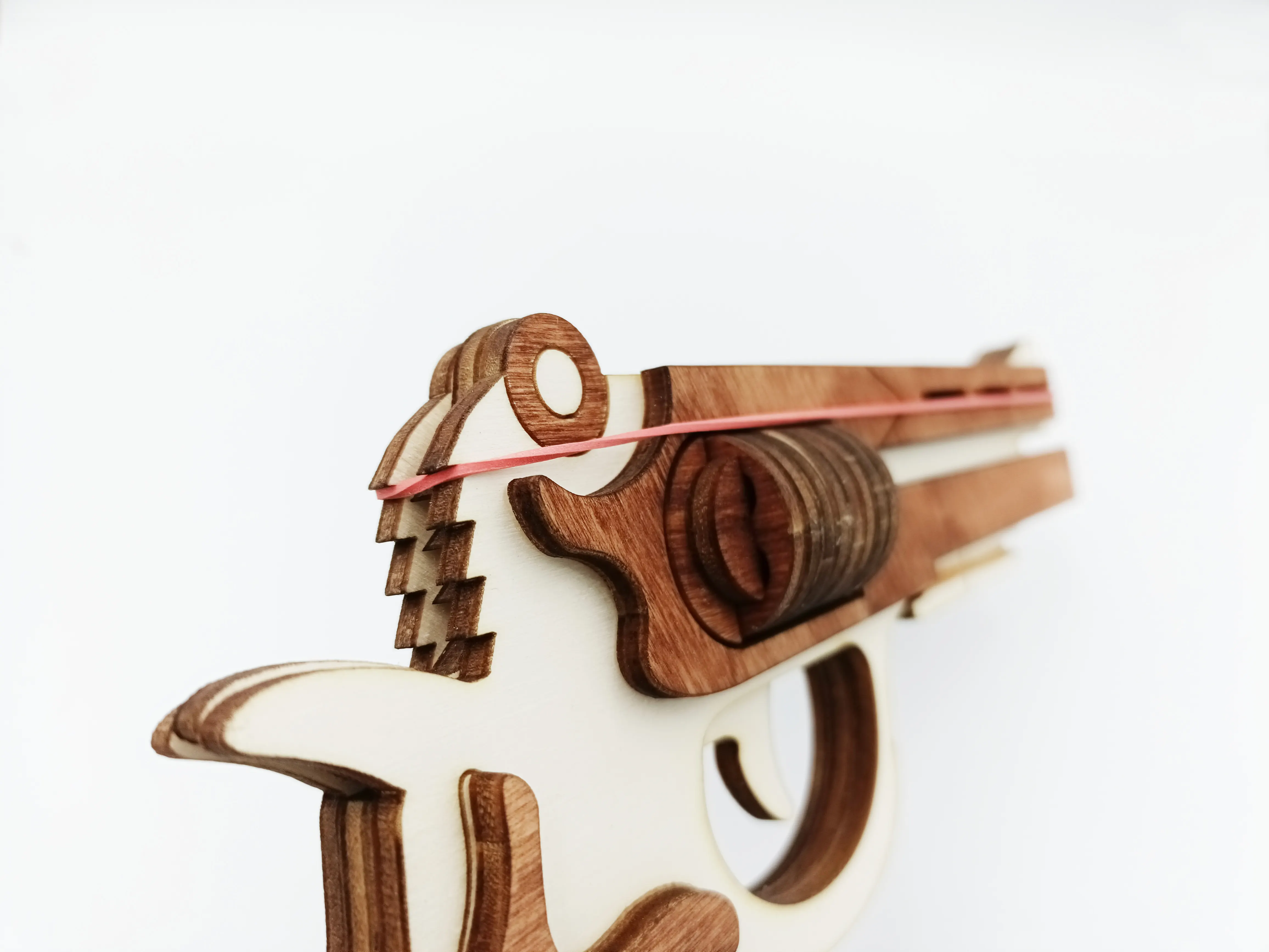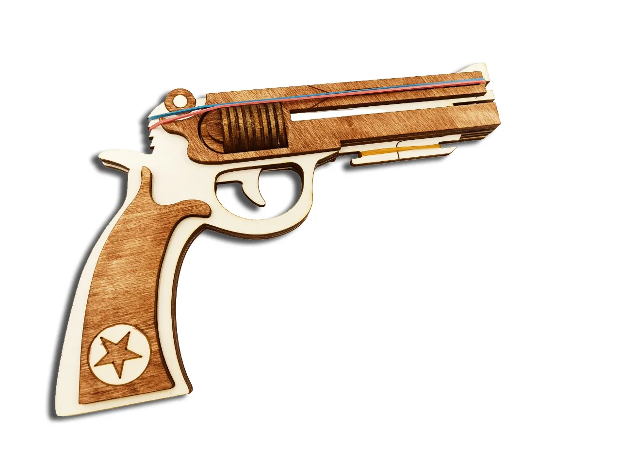 Pistol de lemn cu elastice WoodMag M2, tip revolver