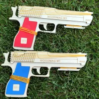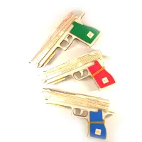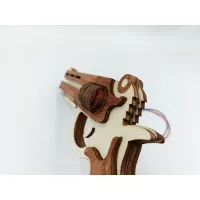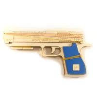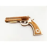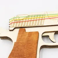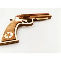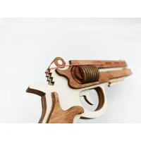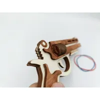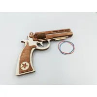 - Pistol din lemn in doua culori cu bandă de cauciuc;