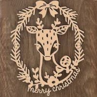Decoratiune ornament de Craciun, ren si braduti, WoodMag.ro, din lemn