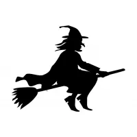 Decoratiune de Halloween vrajitoare pe matura, din lemn, woodmag DHV01